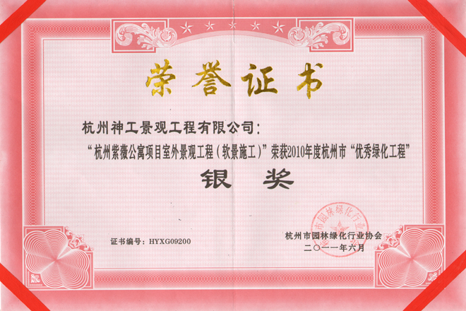 2011年"杭州紫微公寓" 获省"优秀园林工程"银奖