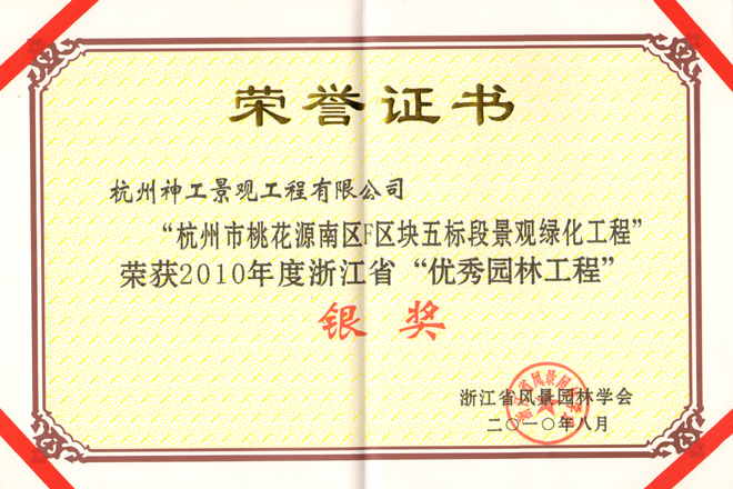 2010年"桃花源南区F区块五标段" 获省"优秀园林工程"银奖