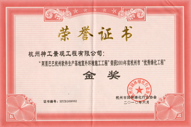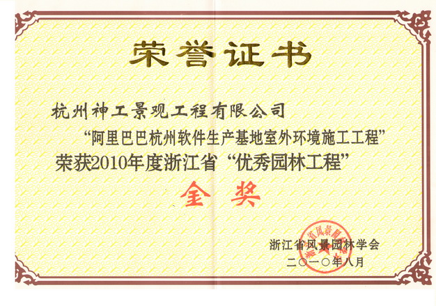 2010年"阿里巴巴杭州软件生产基地" 获省"优秀绿化工程"金奖
